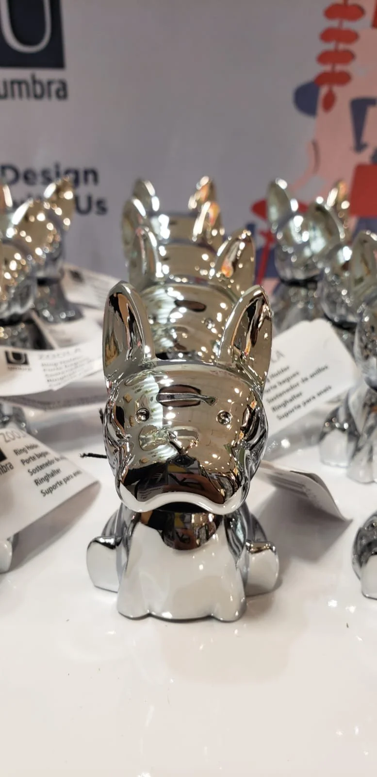 Crafted from die-cast metal with polished chrome finish, these ring holders were designed in the shapes of a French Bulldog, a llama, and a puppy. These whimsical yet functional pieces became iconic accents in the Umbra catalog. Not only were they decorative statement pieces, but they also provided practical storage, capable of holding multiple rings while adding a touch of charm to homes.